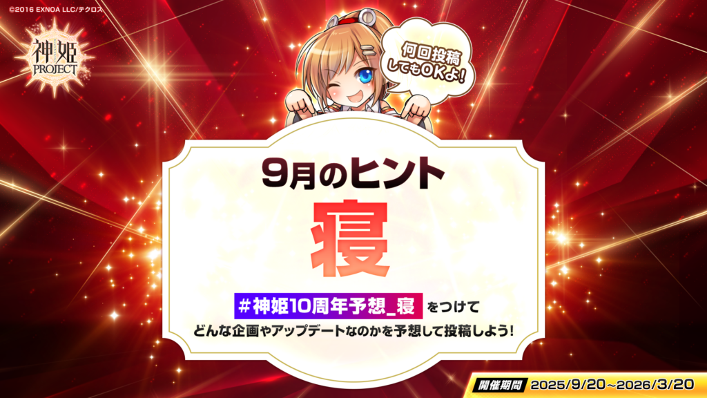 「#神姫10周年予想_寝」をつけ、ポストして応募しよう!